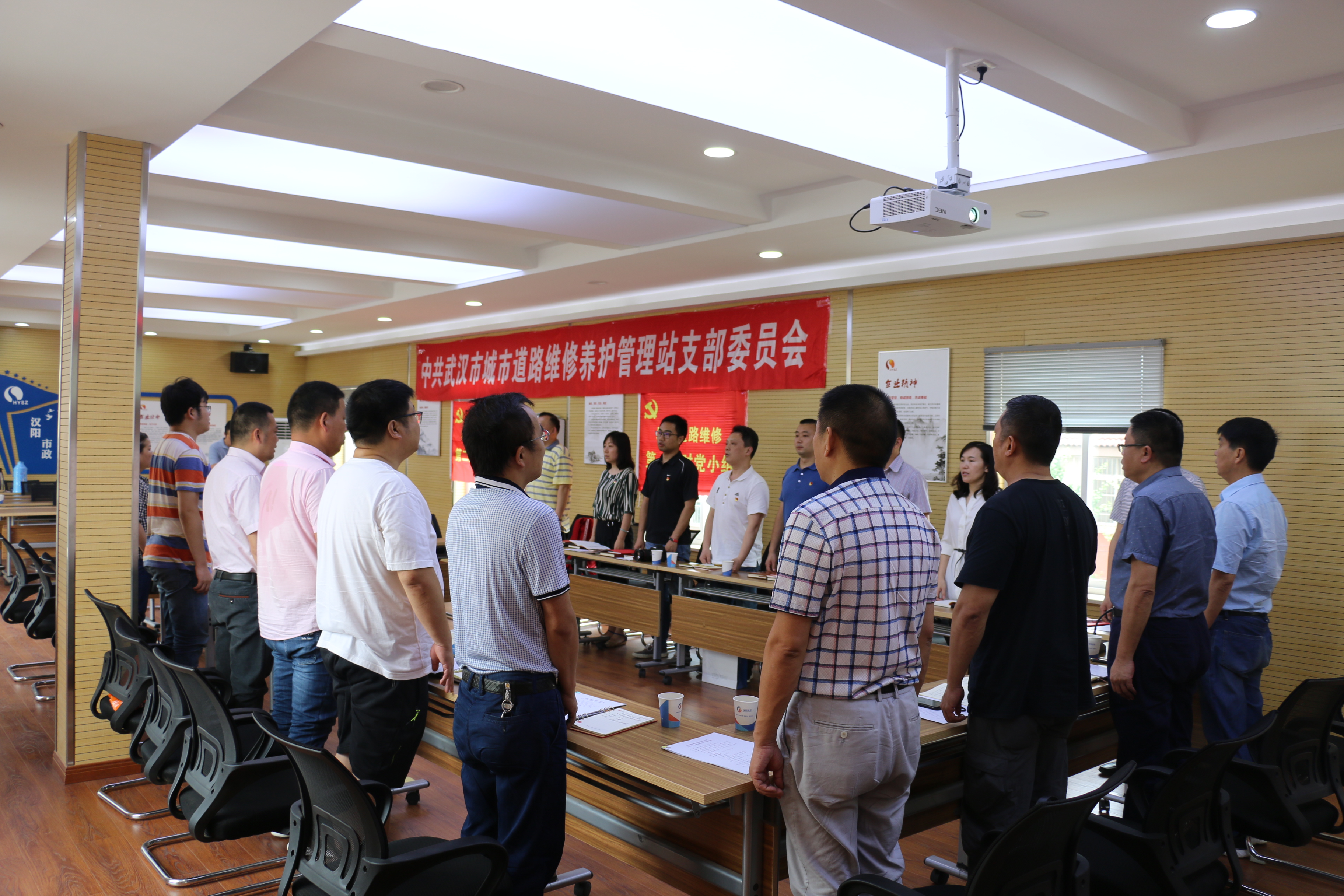 2019年6月6日上午9:00,武漢市道路維修養(yǎng)護(hù)管理站聯(lián)合參建單位漢陽市政維修一隊,攜手開展六月份主題黨日活動。武漢市城建局副局長向暉、市道路維修養(yǎng)護(hù)管理站站長李華、副站長湯景舟、丁繼斌以及漢陽市政集團(tuán)有限公司副總經(jīng)理邢榮斌、漢陽市政維修一隊黨支部書記兼隊長王繁等同志全程參加了本次活動。