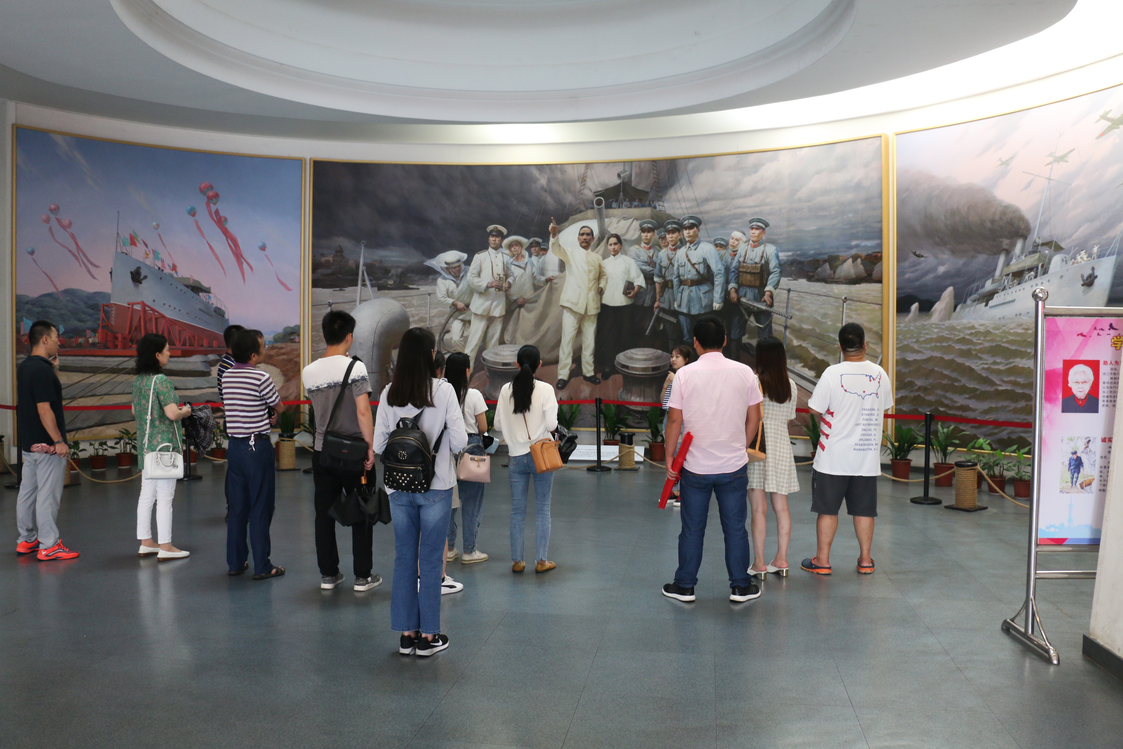 走近中山艦博物館首先映入眼簾的是一幅武昌起義的浮雕,大家佇立在浮雕前,緬懷著先烈。接著我們看到了中山艦,中山艦原名永豐艦,在其26年的服役過程中,經(jīng)歷了護(hù)國(guó)運(yùn)動(dòng)、孫中山廣東罹難事件和武漢會(huì)戰(zhàn)等眾多歷史事件,是中國(guó)近現(xiàn)代史特別是國(guó)民革命史上重要的歷史見證物。 緊接著大家參觀了中山艦出水文物精品陳列館,看著一件件古老的歷史文物,感覺一股滄桑的氣息迎面撲來,仿佛把我們帶入那個(gè)戰(zhàn)爭(zhēng)的年代。大家都感慨我們今天的幸福生活都是靠無數(shù)革命先輩用自己的鮮血換來的,我們應(yīng)該珍惜這來之不易的幸福。