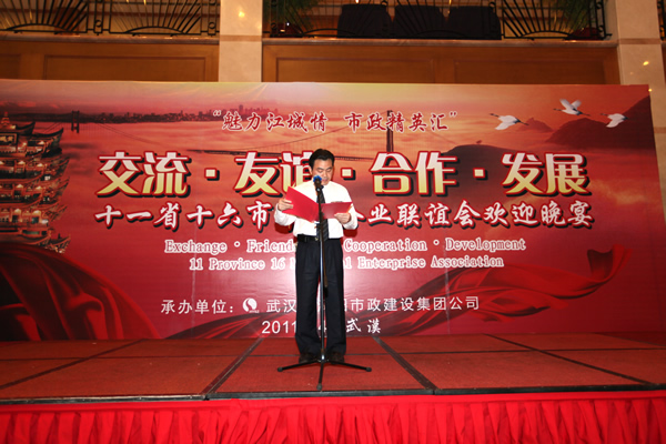 4月21日,【魅力江城情 市政精英匯】暨2011年十一省十六市市政企業(yè)聯(lián)誼會在武漢晴川假日酒店隆重舉行。中國市政協(xié)會秘書長沈洵先生及區(qū)領(lǐng)導出席了本次聯(lián)誼會。