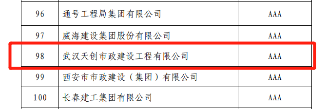 漢陽市政天創公司獲評“2020年度AAA級信用企業”