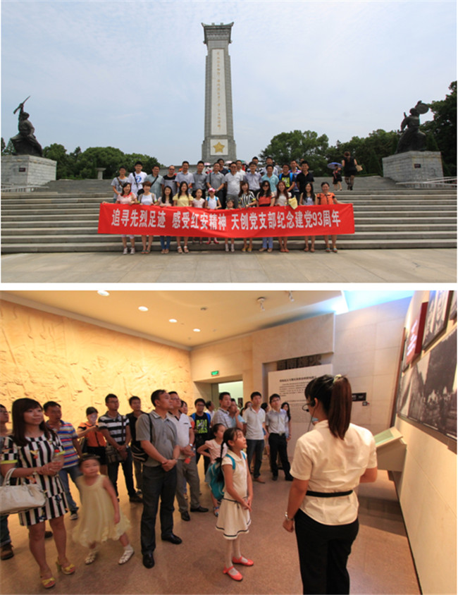 為紀念建黨93周年,進一步推進公司黨的群眾路線教育實踐活動,2014年8月22日上午8:00,天創(chuàng)公司黨支部組織公司全體黨員赴革命老區(qū)紅安縣開展了一次紅色教育之旅。