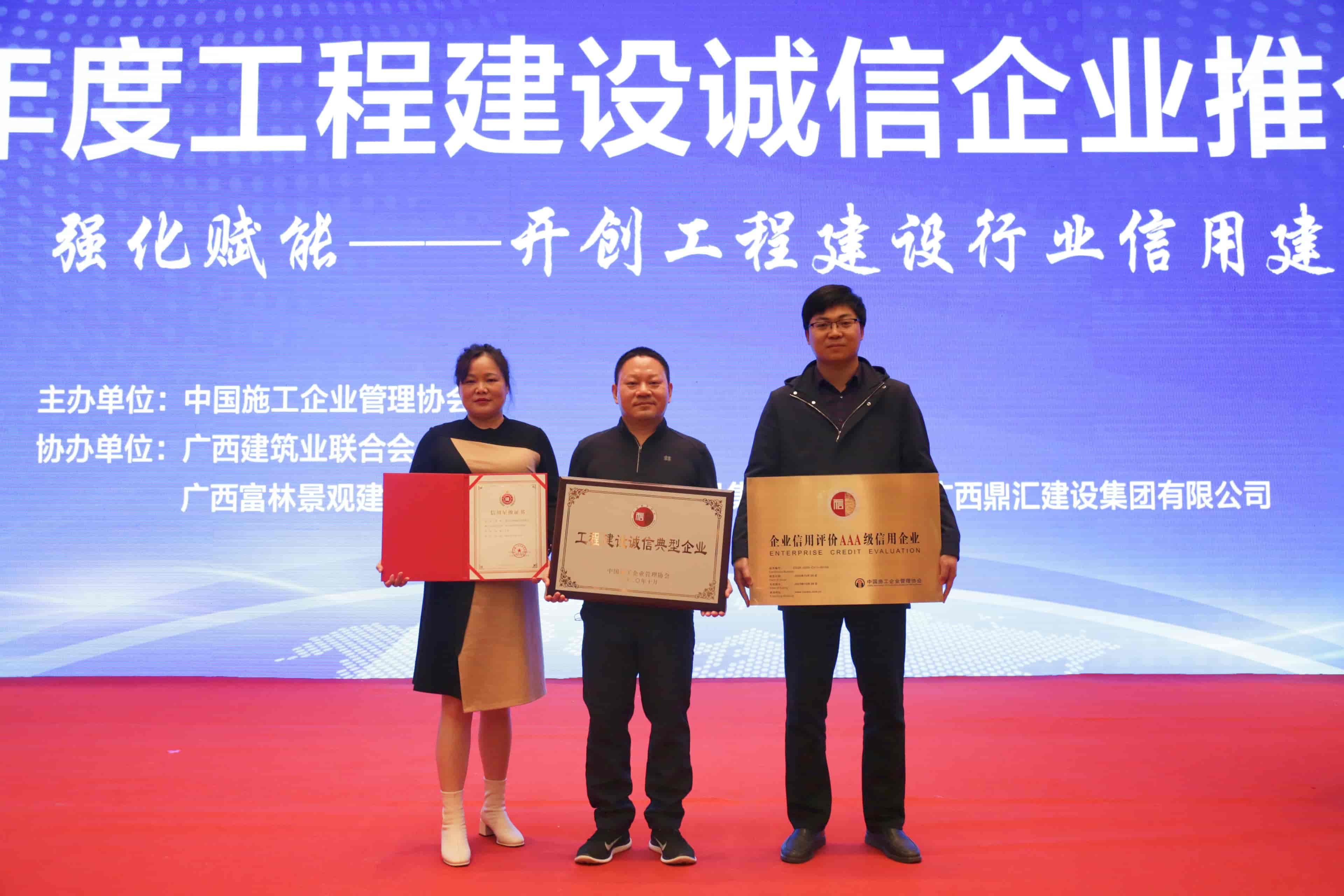 ? ? ? 12月4日,中國施工企業(yè)管理協(xié)會在廣西南寧召開“2020年度工程建設誠信企業(yè)推介大會”。漢陽市政、漢陽市政天創(chuàng)公司、漢陽市政博宏公司榮獲“2020年度工程建設誠信典型企業(yè)”“信用星級企業(yè)”“AAA信用等級企業(yè)”3項榮譽,為集團企業(yè)信用獎項開創(chuàng)了新篇章。?