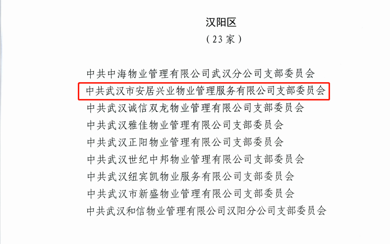 近日,中共武漢市物業行業委員會公布《2021年武漢市物業行業基層黨組織示范點名單》,漢陽市政安居興業公司黨支部名列其中。經各區物業行業黨委推薦報送,武漢市物業行業黨委審核評定,全市共有186個基層黨組織被命名為“2021年武漢市物業行業基層黨組織示范點”。