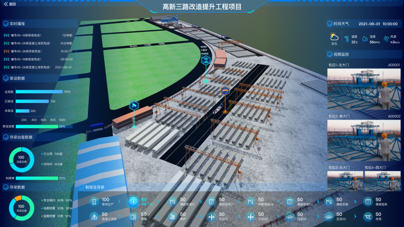 項目以“人工智能應用”為主,以“大數(shù)據(jù)智能化”為引領,構(gòu)建“智慧交通、智慧橋梁、智慧水務、智慧管網(wǎng)、智慧路燈”五大智慧工程。項目以BIM+GIS技術打造的高精度數(shù)字模型為依托,采用預制裝配式連續(xù)結(jié)構(gòu)及智能機械化設備,讓智慧建造推動項目建設智能、高效。項目創(chuàng)新應用“項目協(xié)同管理平臺”、“智慧梁場系統(tǒng)”,延伸“項目信息化辦公平臺”,打造工地智慧運維大腦。