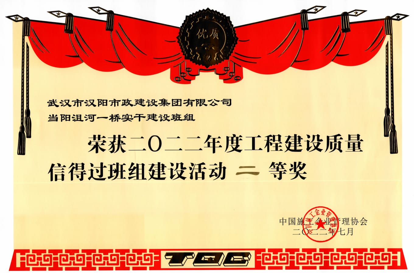 近日,中國施工企業管理協會公布了2022年工程建設優秀質量信得過班組名單,漢陽市政首次參加此類活動,申報的3個成果均獲得獎項。其中,三公司“武漢博宏建設集團有限公司裝修班組”和七公司“當陽沮河一橋實干建設班組”榮獲二等班組獎項;二公司“武昌生態文化長廊工匠創新質量班組”榮獲三等班組獎項。