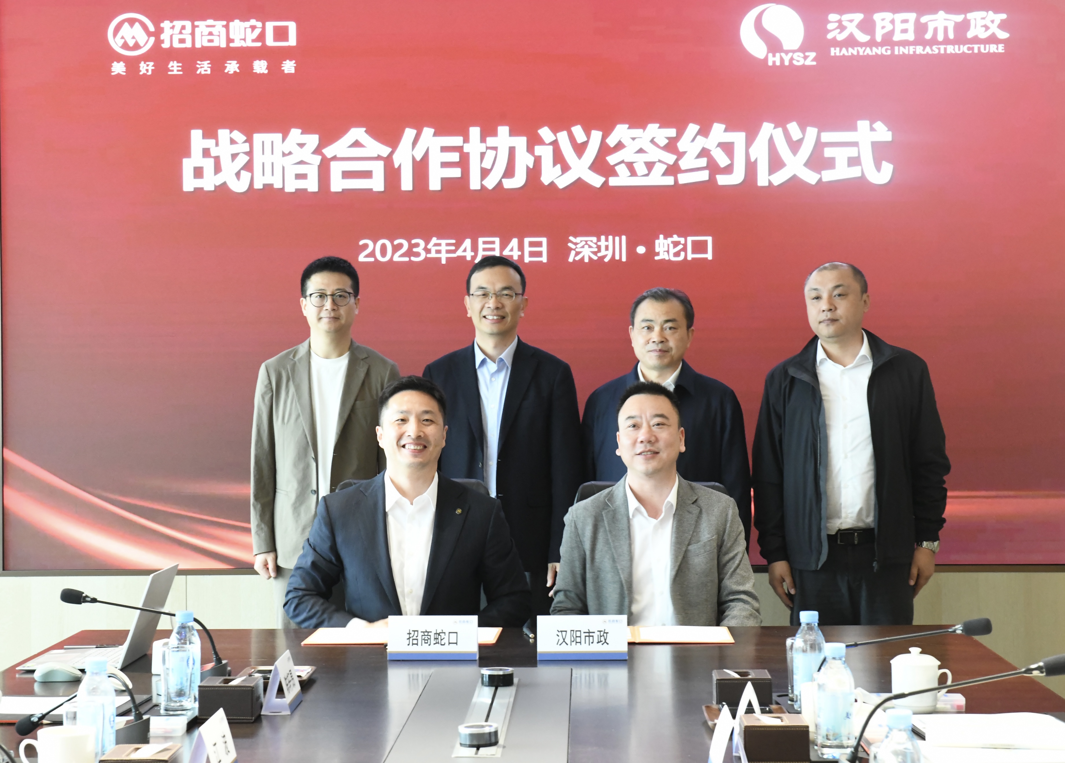 4月4日,武漢市漢陽市政建設集團有限公司與招商局蛇口工業區控股股份有限公司簽署戰略合作協議。漢陽市政黨委書記、董事長嚴悌文,招商蛇口副總經理伍斌、副總經理呂斌等多人見證簽約,漢陽市政常務副總經理、天創地產董事長錢濤與招商蛇口武漢公司總經理江波代表雙方簽約。
