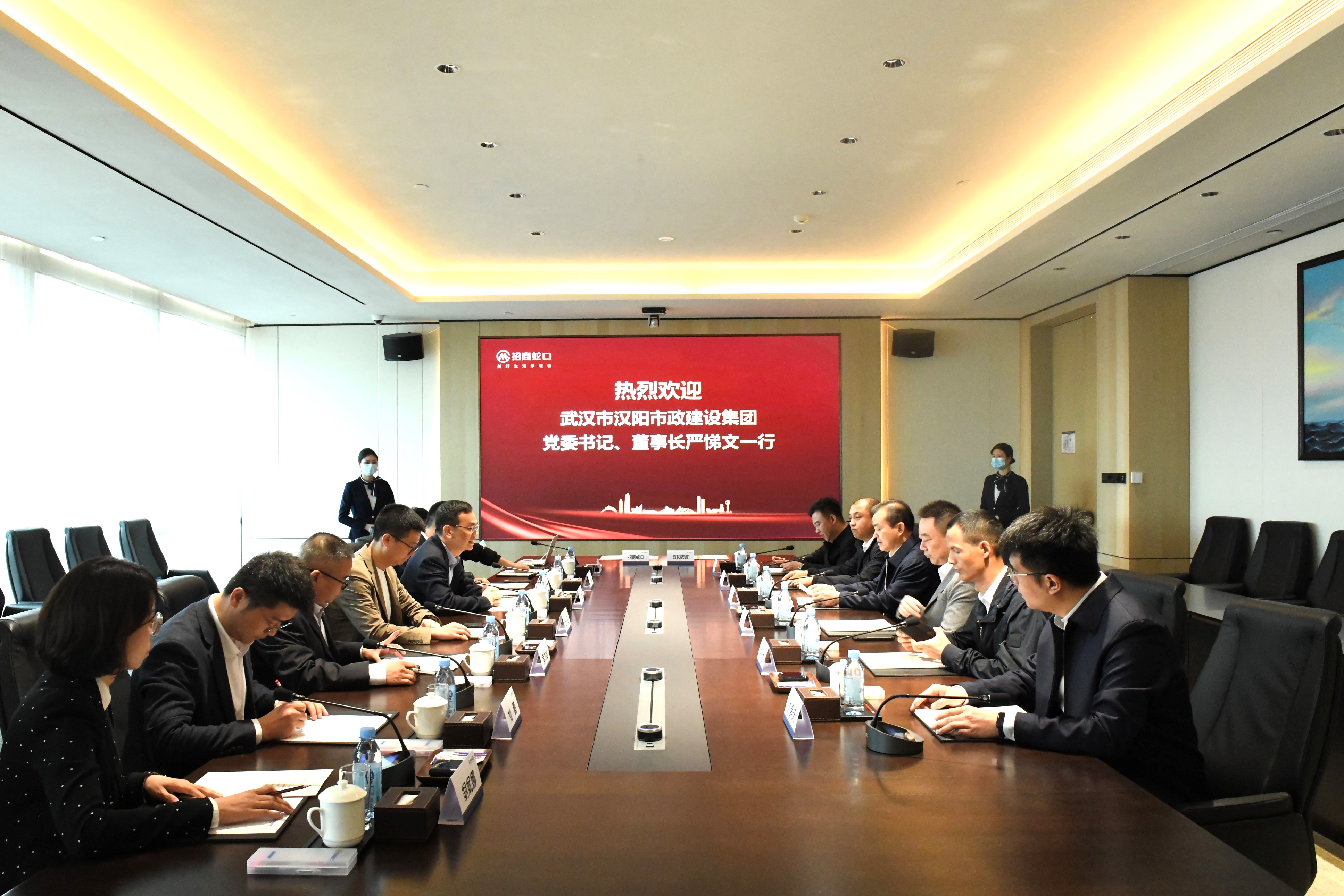 招商蛇口相關領導對嚴悌文一行的到訪表示熱烈歡迎,對漢陽市政的企業規模、行業實力及發展前景給予高度認可,并表示,招商蛇口堅持城市聚焦戰略,在全國范圍內尋找志同道合的全方位、全鏈條合作伙伴,漢陽市政作為一家具有從投資、開發、建設到運營管理的全產業鏈管控能力的大型綜合性國有建筑業企業,近年來發展迅速,業務規模不斷擴大,招生蛇口希望能與漢陽市政建立長期、穩定、共贏的戰略合作關系,以點帶面,發揮雙方優勢,打通多模式合作路徑,推動雙方在全國范圍內合作落地。