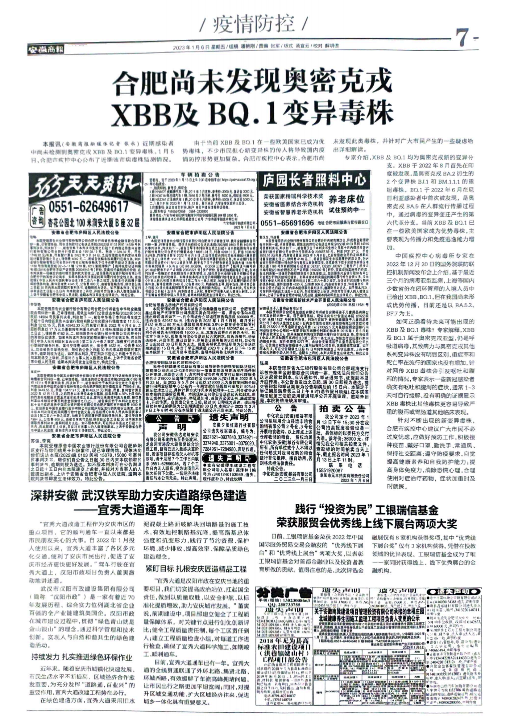 安徽商報推出《深耕安徽 武漢鐵軍助力安慶道路綠色建造——宜秀大道通車一周年》專版報道。