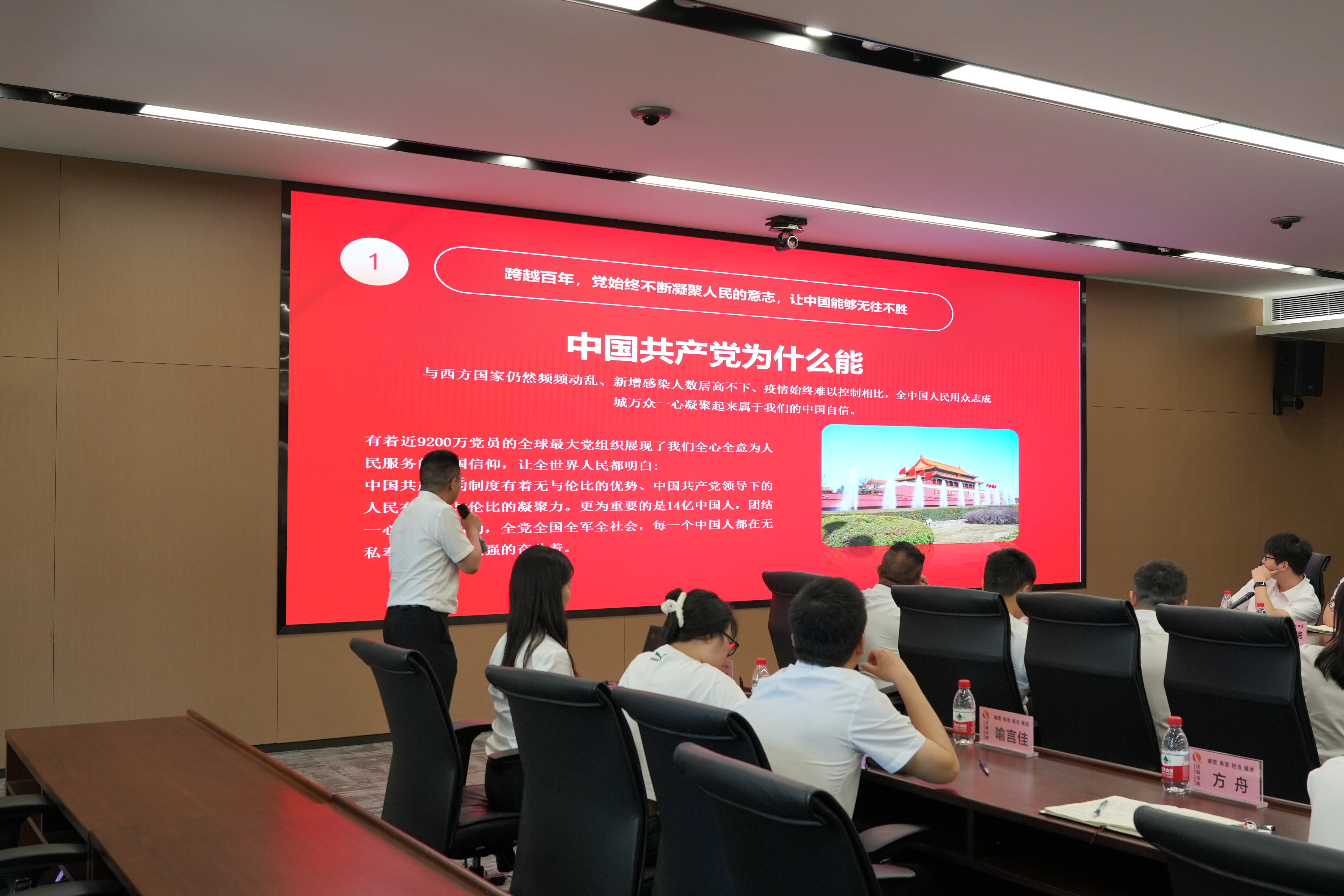 理論宣講員劉坤同志作《感悟百年黨史蘊含的真力量》宣講,從黨凝聚人民意志、黨始終敢于犧牲自己、黨帶領人民軍隊從勝利走向勝利三個方面幫助與會人員重溫百年黨史,理解“中國共產黨為什么能?”,從黨史中汲取前進的動力,明確奮斗的方向。