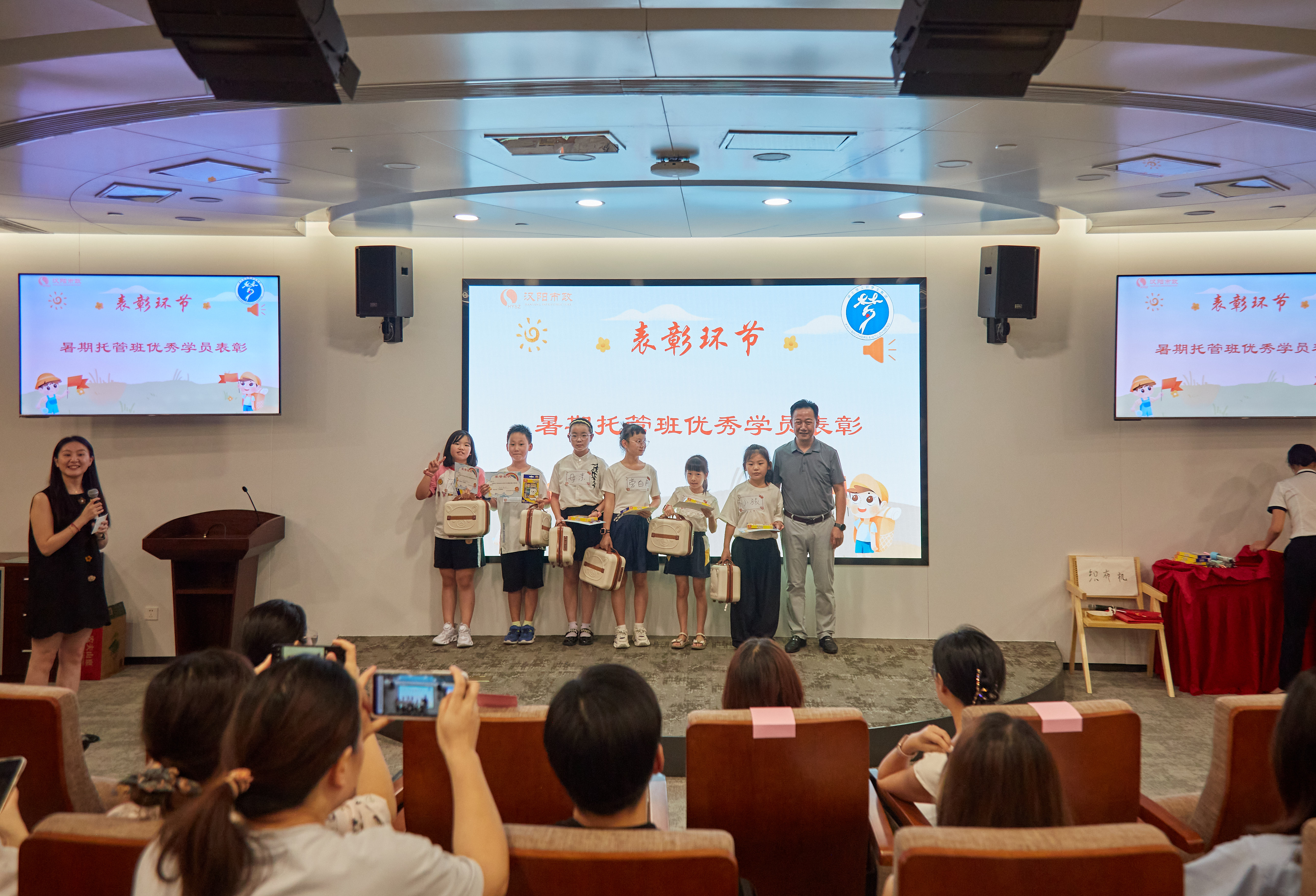 本次結(jié)營儀式在溫馨的暖場視頻里拉開序幕,暖場視頻記錄了32位漢陽市政職工子女在暑期托管班中學(xué)習(xí)生活的點(diǎn)滴日常。
