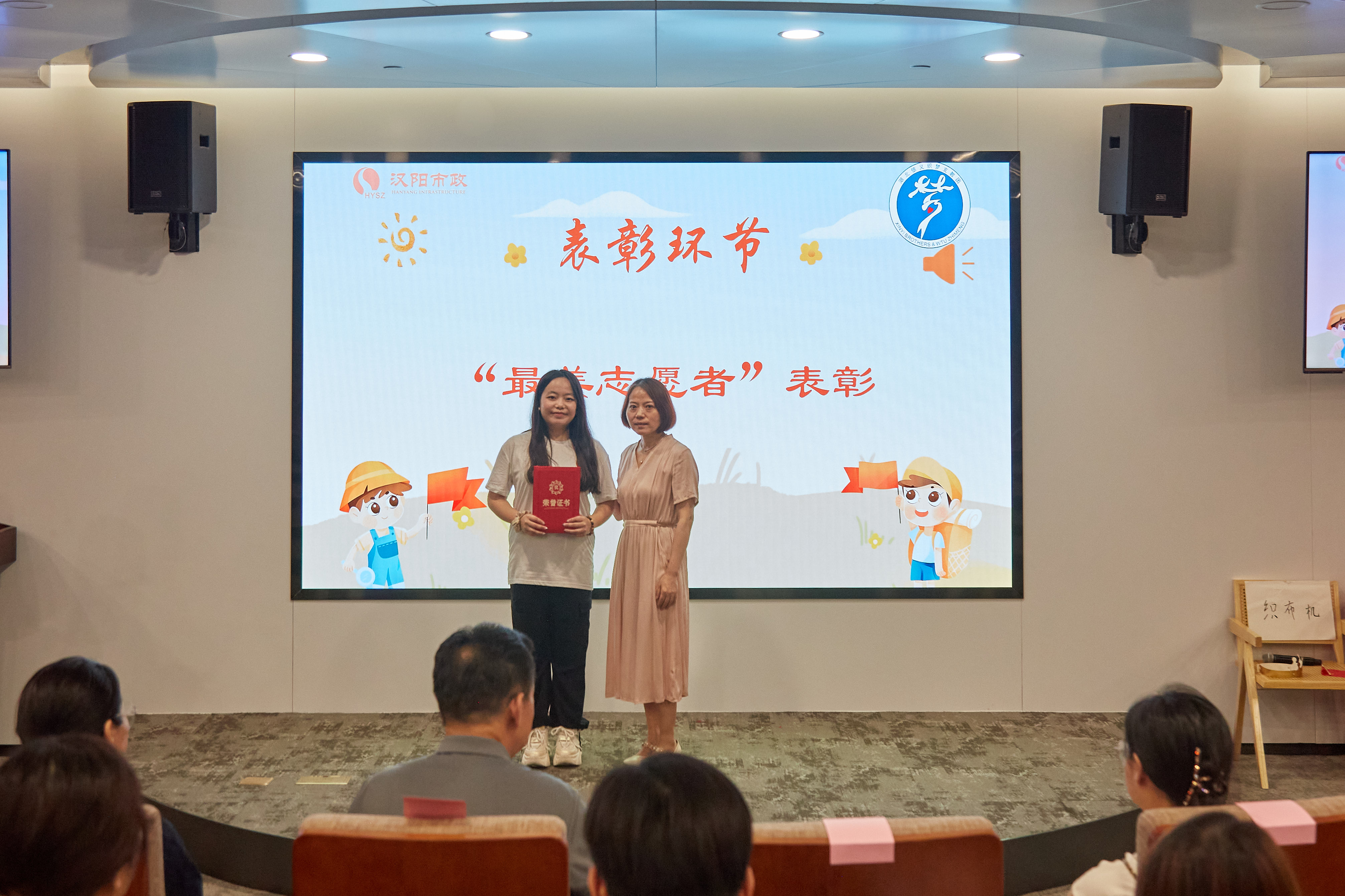 在分享環(huán)節(jié)上大學(xué)生志愿者馮蕊蕊和兩位小朋友都上臺講述了他們眼中的漢陽市政,并跟在場的觀眾分享了一個(gè)月以來在暑托班度過的美好時(shí)光。同時(shí)在場的職工家長代表也在結(jié)營儀式上暢所欲言,表達(dá)了對本次暑托班活動的感謝,并提出了一些建設(shè)性的意見和建議,為集團(tuán)工會更好地開展暑期托管班工作提供了思路。