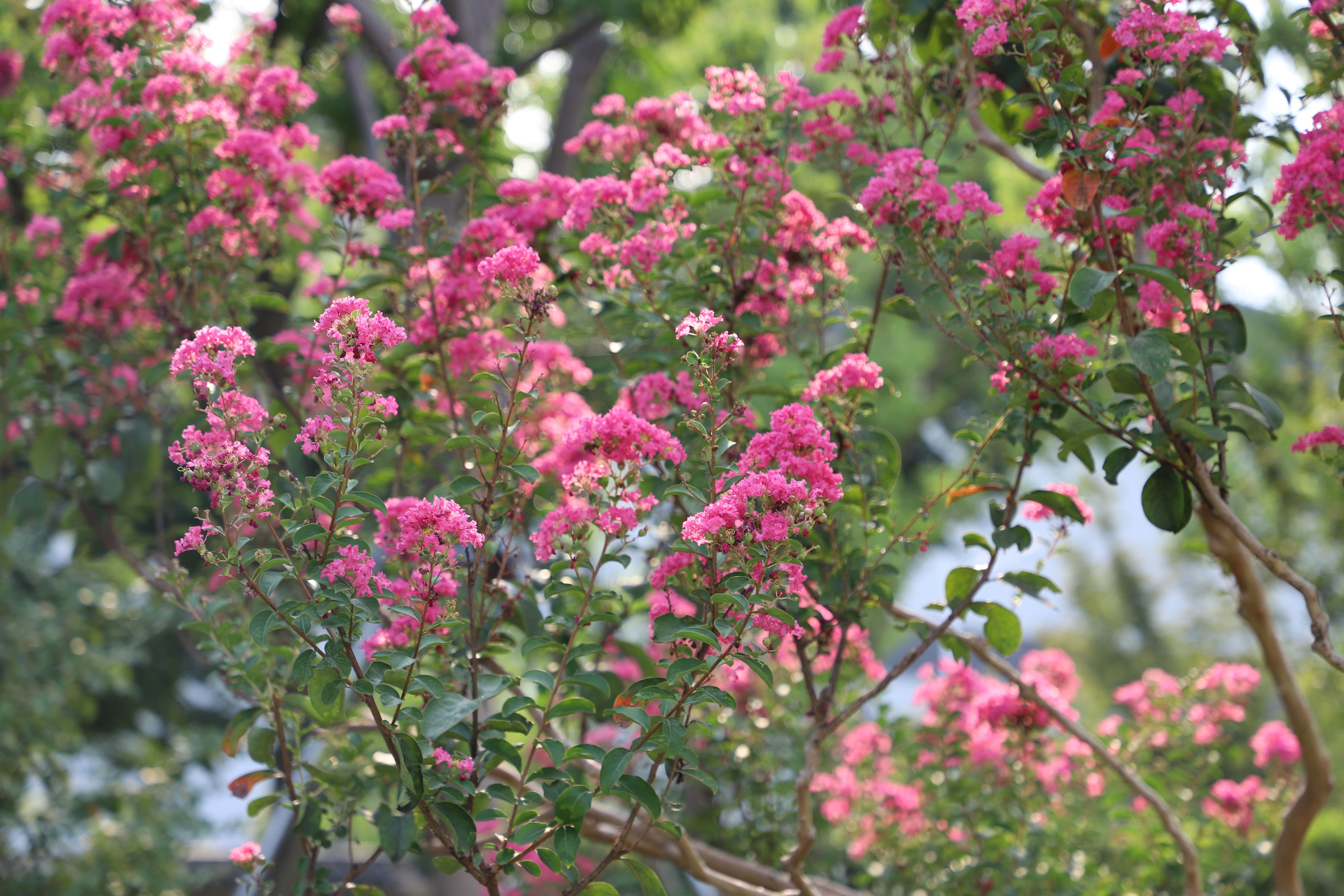 生長(zhǎng)著茂密繁盛、約半人高的紫薇樹叢,