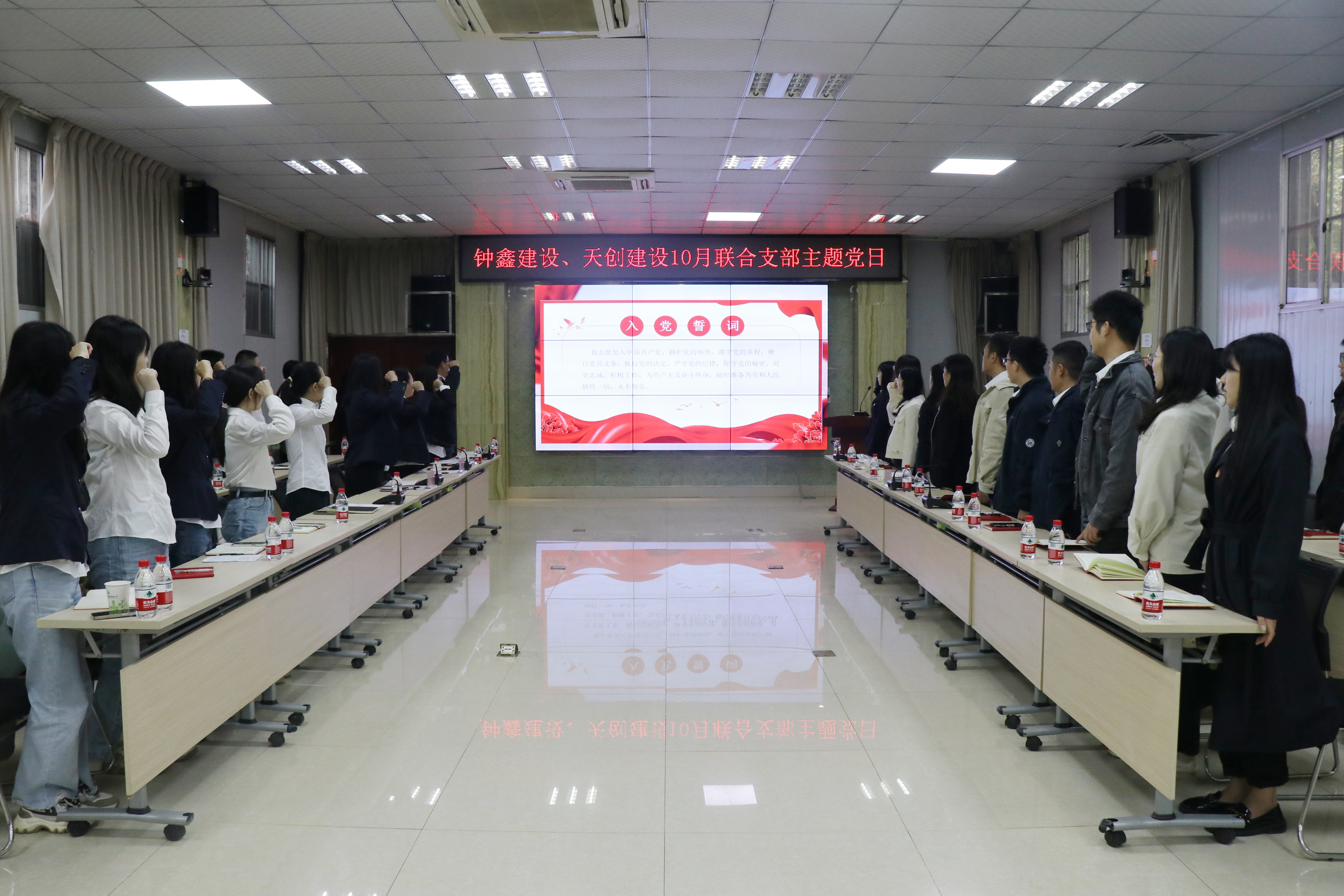 活動(dòng)伊始,鐘鑫建設(shè)黨員代表劉成同志領(lǐng)誓,黨員們現(xiàn)場(chǎng)肅立、高舉右拳,在擲地有聲的誓詞中回望入黨初心。